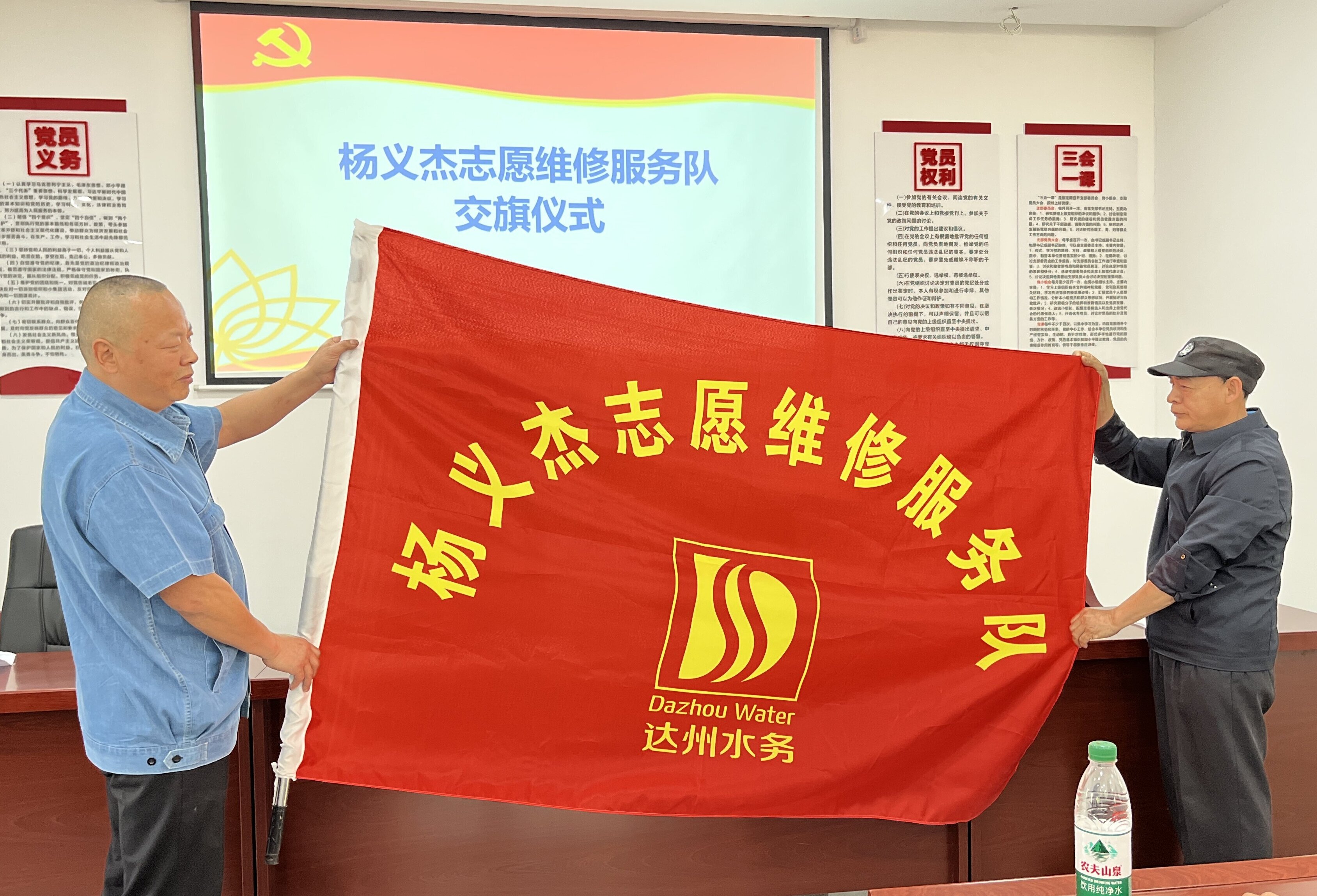 會(huì)上,陳巧麗介紹了服務(wù)隊(duì)的基本情況,并組織觀看服務(wù)隊(duì)2025年宣傳片,12名新加入的隊(duì)員作了自我介紹。隨后進(jìn)行的隊(duì)旗交接儀式上,新老隊(duì)長(zhǎng)完成隊(duì)旗交接,新任隊(duì)長(zhǎng)代雨平表示,此次交接,深感責(zé)任重大,今后將繼續(xù)踐行初心使命,以一流的服務(wù)質(zhì)量和飽滿熱情,展現(xiàn)隊(duì)伍風(fēng)采,樹立良好形象。
