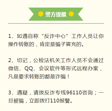 現(xiàn)實工作中,民警要先了解情況,進(jìn)行核實調(diào)查,不會在網(wǎng)上辦案、更不會要你轉(zhuǎn)賬!