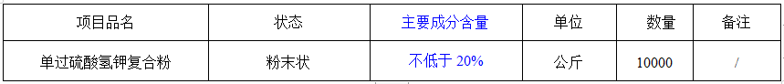 2.1 項(xiàng)目名稱(chēng):達(dá)州市惠泉污水處理有限公司2020年度單過(guò)硫酸氫鉀復(fù)合粉采購(gòu)項(xiàng)目